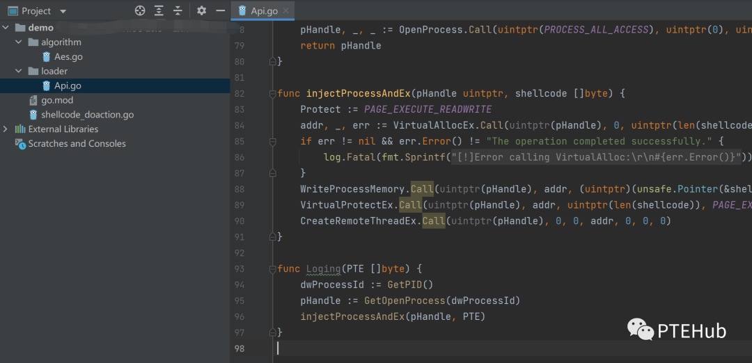 由于其被广泛的恶意使用,因此多数杀软厂商也会针对各种shellcode的特征做查杀,所以生成好的shellcode就需要做加密处理。首先当然需要新建一个go项目。