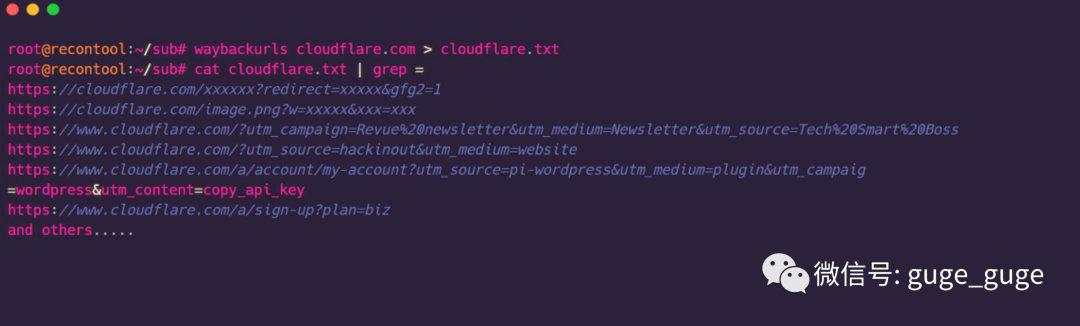 waybackurls cloudflare.com > cloudflare.txtcat cloudflare.txt | grep =