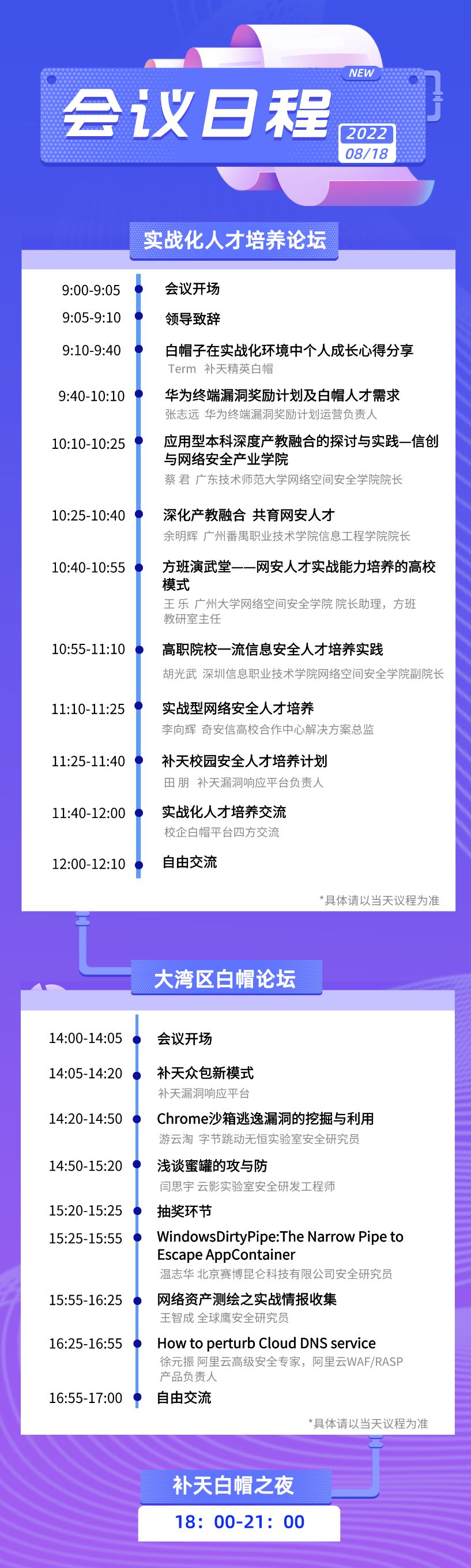 「大湾区白帽论坛」将在三天后(8月18日)准时开幕!您准备好了吗?这里有最前沿技术分享,最真实的白帽成长故事,最轻松的技术交流氛围!更有现场市集打卡、白帽之夜!带你嗨翻大湾区!全天不间断抽奖,硬核礼品在等你!