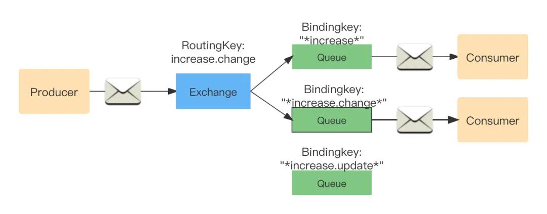 Binding:Binding 连接起了 Exchange 和 Message Queue。在服务器运行时,会生成一张路由表,这张路由表上记录着 MessageQueue 的条件和 BindingKey 值。当 Exchange 收到消息后,会解析消息中的 Header 得到 BindingKey,并根据路由表和 ExchangeType 将消息发送到对应的 MessageQueue。最终的匹配模式是由 ExchangeType 决定;