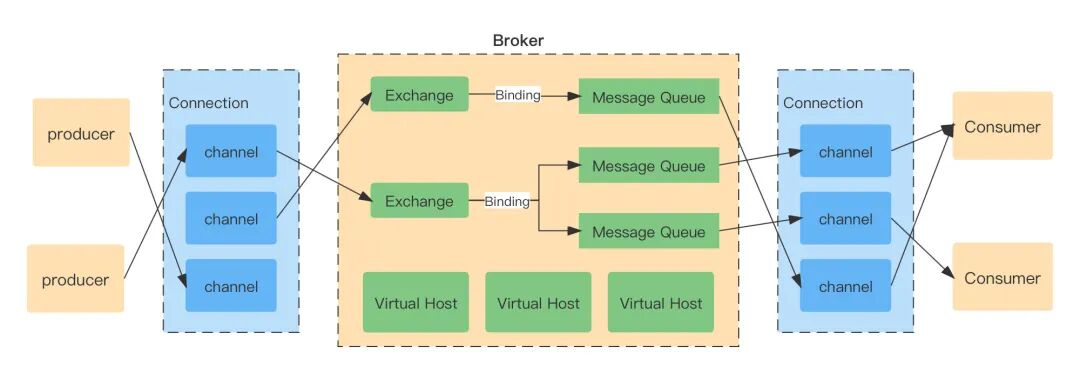 Virtual Host:是一个虚拟概念,权限控制的最小单位。一个 Virtual Host 里包含多个 Exchange 和 Queue;