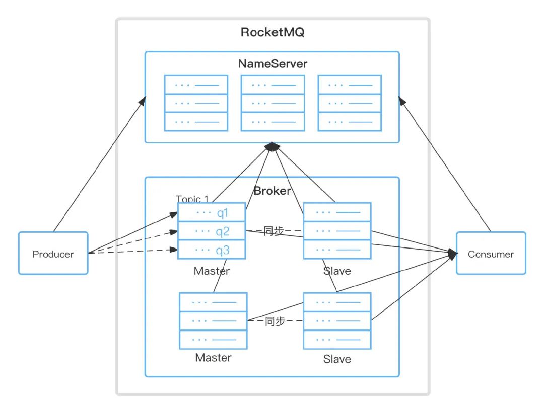 Broker:存储消息,以 Topic 为纬度轻量级的队列;转发消息,单个 Broker 节点与所有的 NameServer 节点保持长连接及心跳,会定时将 Topic 信息注册到 NameServer;