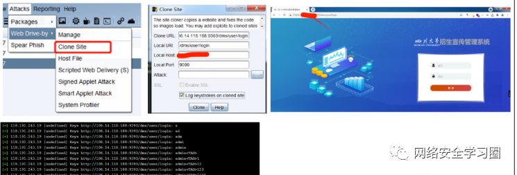 值得一提的是,CS具有一键克隆钓鱼网站的功能,配合环境和话术,目标很容易上钩。