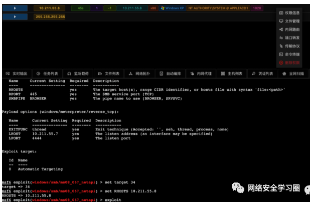 接下来以攻击一台XP作为示例,使用msf的基本的流程如下: