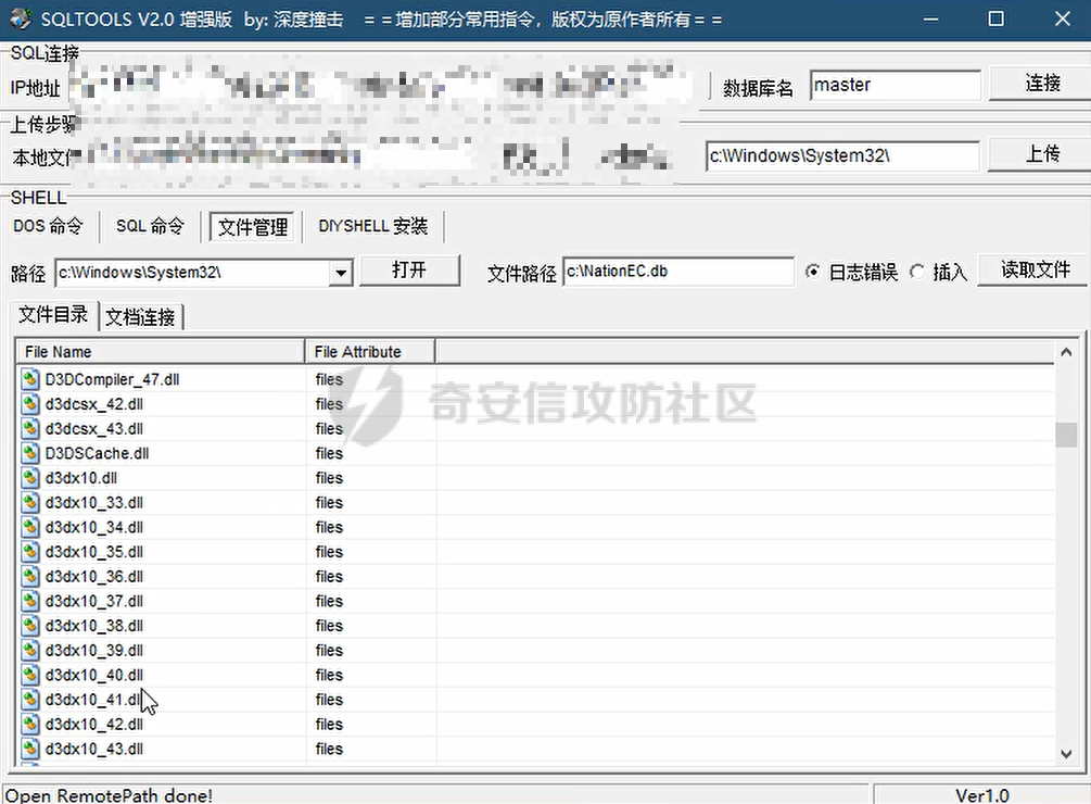 远程到终端上面才知道这台机器是运维的机器,终端上面打开了sql server连接软件,同样使用上面的命令开启xp_cmdshell执行命令,这里sql server数据库做了降权操作,权限是sqlserver服务权限。