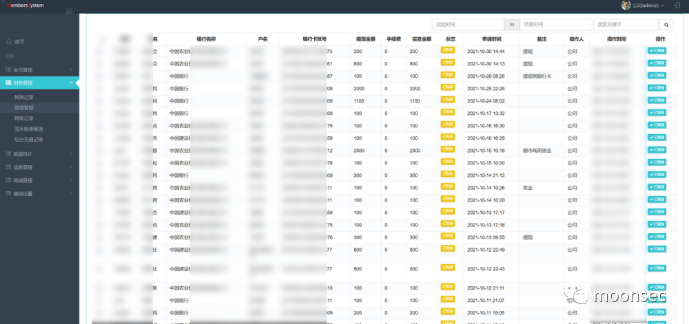 网站长这样,不要看他长这样,其实是一个菠菜网站。当时的想法是,支付漏洞、越权、SQL、注入、验证码、爆破,尝试了几个,(这里我需要总结一下,打网站,真的是需要很大的耐心去攻克,我每次都是瞄几眼,就放弃挣扎了,这里我队友很不服输的心态非常让我学习,一直重复的去干同一件事情,这个我是很敬佩他的,但是其他的所作所为就让我顶不住了)都无果,感觉自己哎又不行了,然后直接丢给队友了,欸嘿,我队友运气是真的好,爆破一下午出来了另外一个前台的账户admin111111