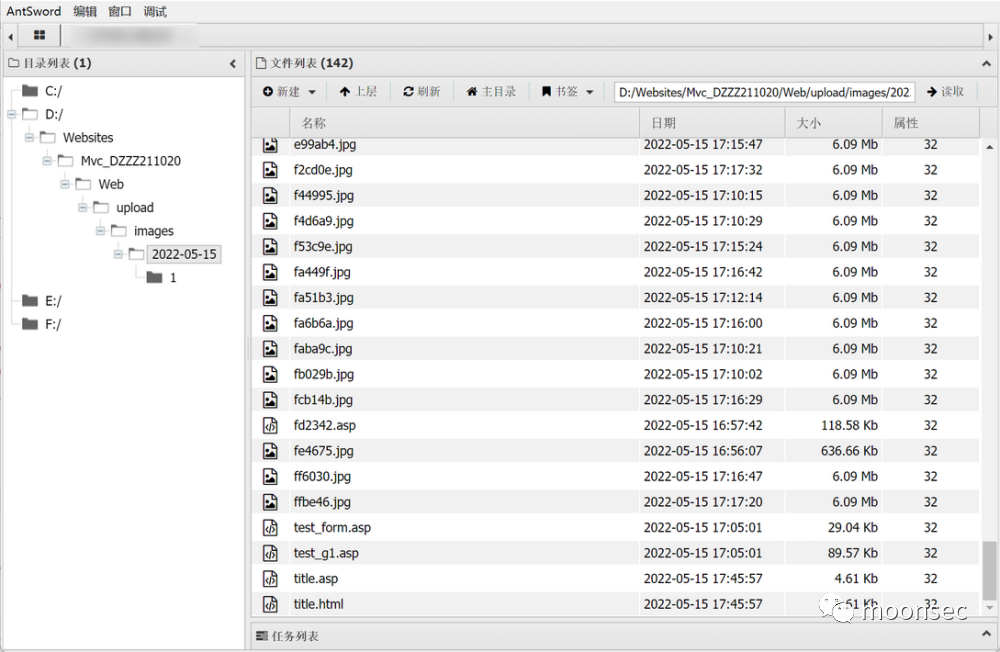 这里我通过蚁剑上传大马,也可以通过其他的大马