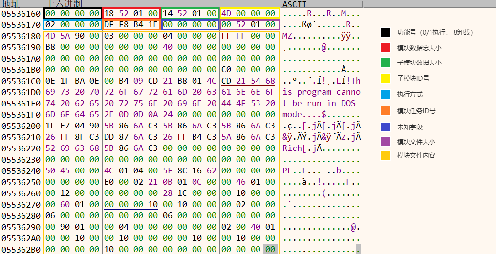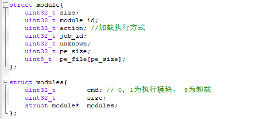 发送上线请求后,会收到要执行的模块,并根据要求的执行方式加载执行。模块数据结构及实例如下:![]()