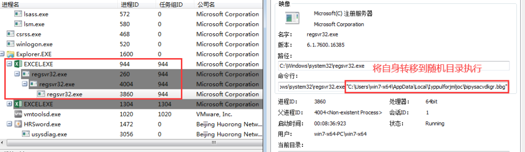 Emotet主模块成功执行后,根据自身是否为管理员会将自身转移到Systemx86(System32或SysWow64)或%APPDATA%或随机目录下,创建服务运行或启动新进程执行。