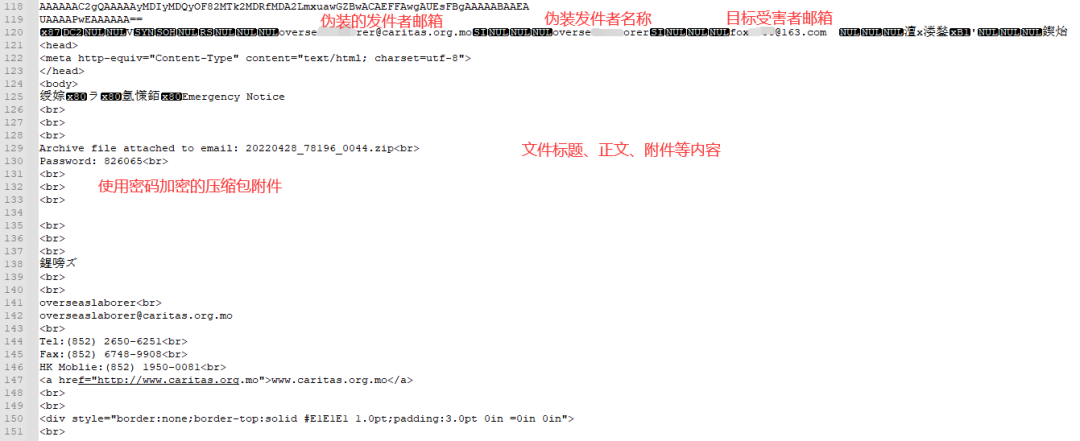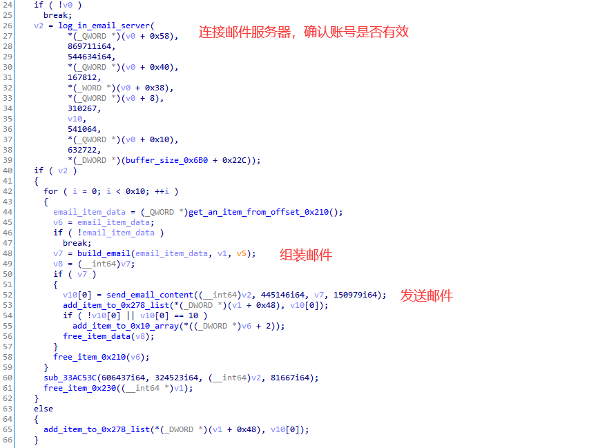 接收到任务数据后,该模块会遍历测试C2服务器返回的邮箱账号是否可用。找到可用的邮箱后,组装钓鱼邮件,将垃圾邮件发送给目标受害者。![]()