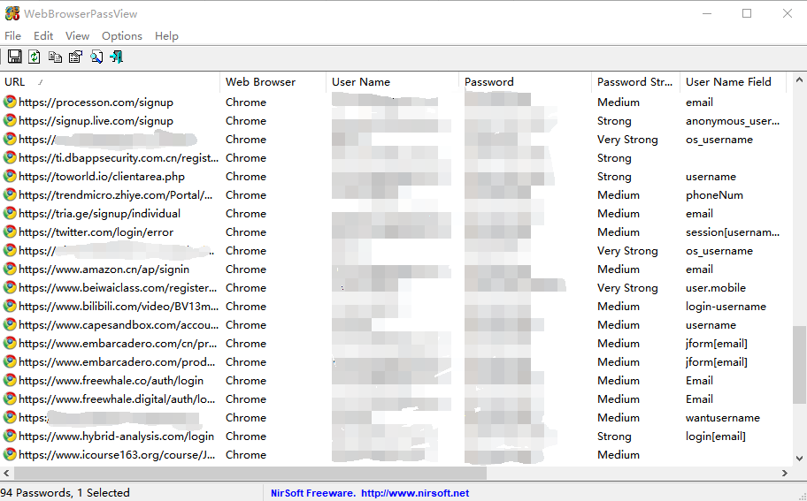 | Nirsoft WebBrowser Pass View模块 | 从IE、火狐、谷歌等浏览器中窃取保存的账密信息 |