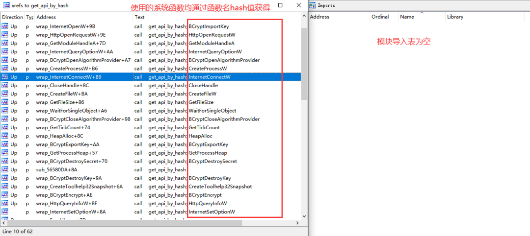 对于主模块payload以及子模块使用的API均通过函数名称hash值获得。