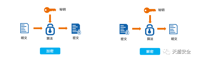 数据加密的过程:对原来为明文的文件或数据按照某种算法进行处理,使其成为不可读的一段代码称为“密文”,达到保护数据不被非法窃取、阅读的目的。