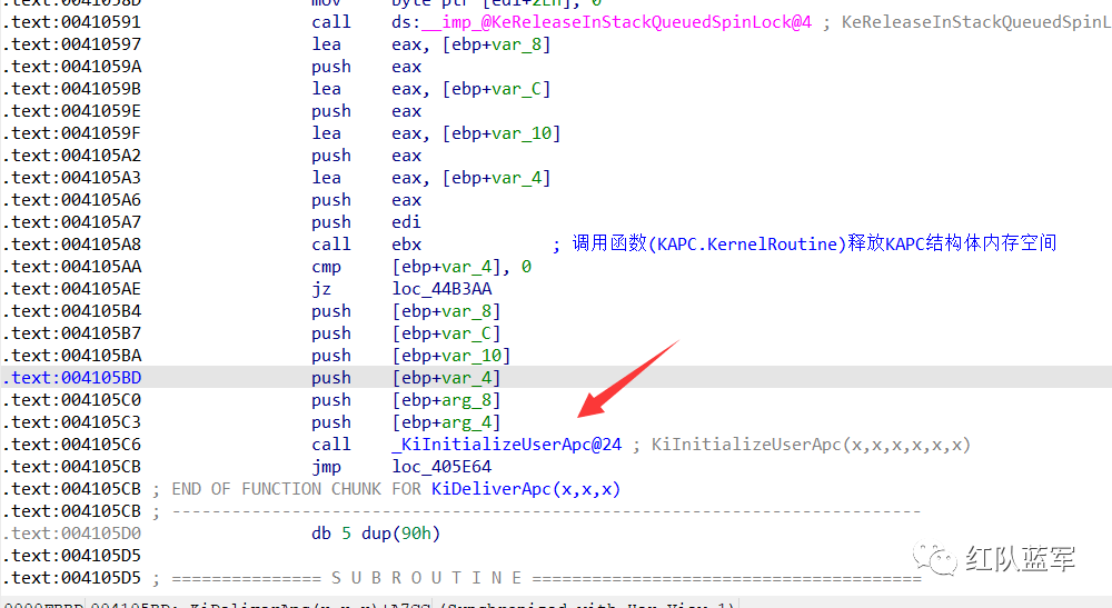 6) 调用函数(KAPC.KernelRoutine)释放KAPC结构体内存空间