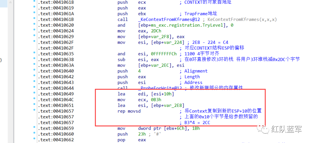 这一部分代码主要是将CONTEXT结构复制到3环的堆栈