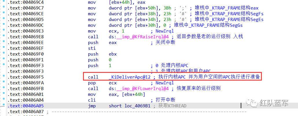 6) 将KTHREAD.ApcState.KernelApcInProgress设置为1 标识正在执行内核APC