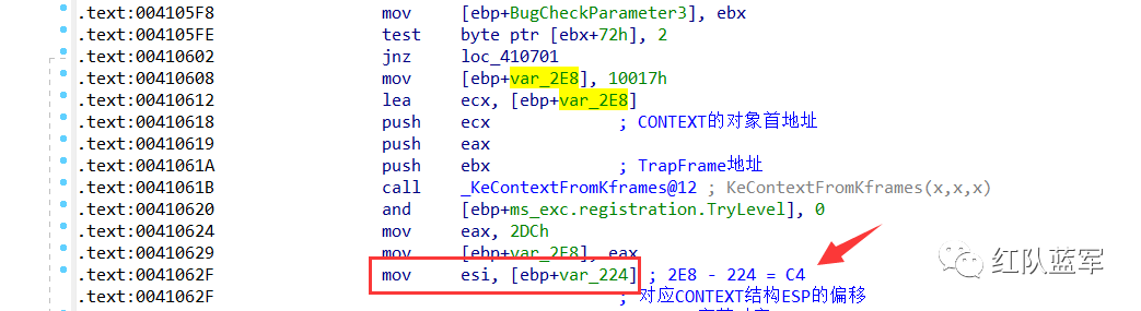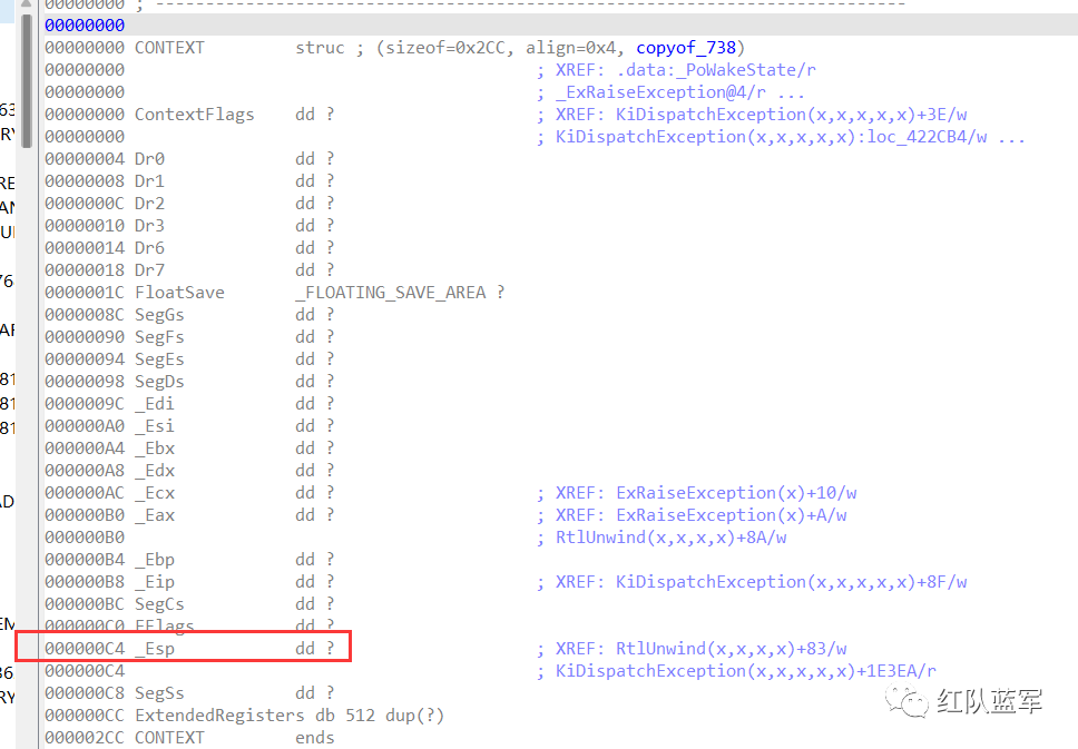 CONTEXT结构体的大小为0x2CC,KAPC的4个参数的大小为0x10,所以减去0x2DC
