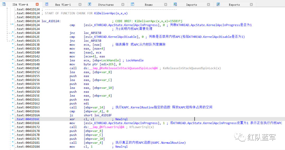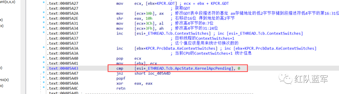 3) 判断是否禁用内核APC(KTHREAD.KernelApcDisable是否为1)