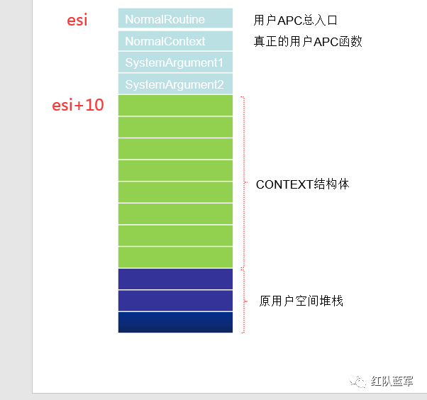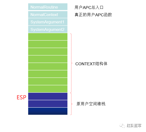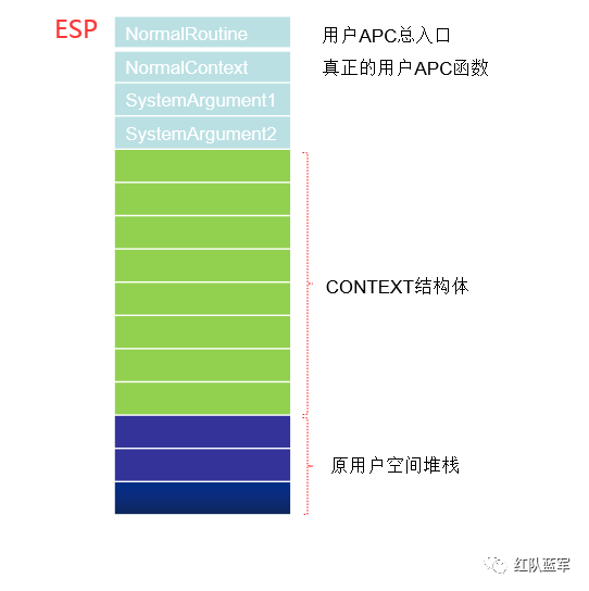处理用户APC要比内核APC复杂的多,因为,用户APC函数要在用户空间执行的,这里涉及到大量换栈的操作: