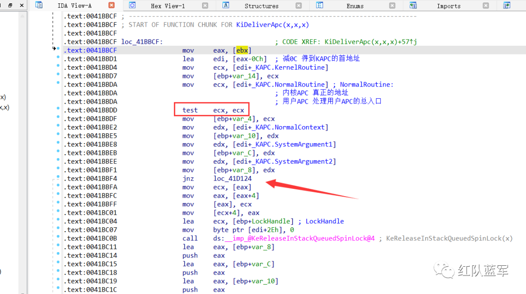跳转后判断NormalRoutine里面存储的是内核APC的地址还是APC的的总入口,然后再跳转