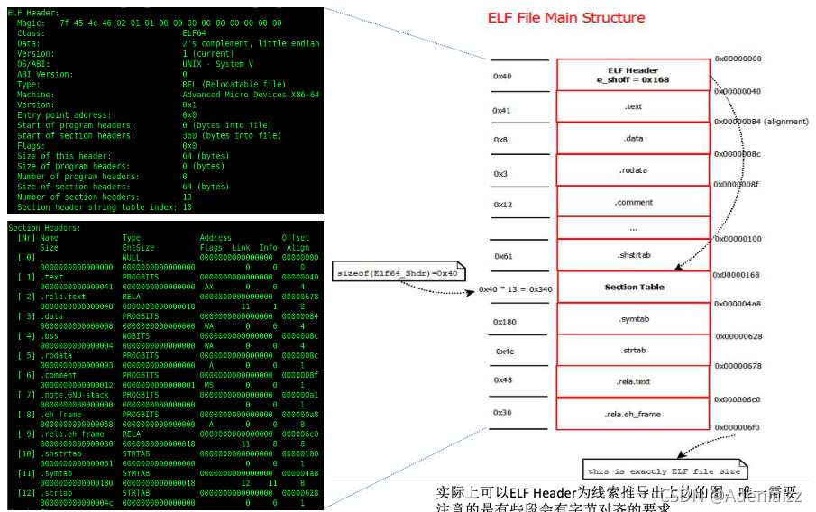 这样我们就把一个可重定位的ELF文件中的每一个字节都搞清楚了。