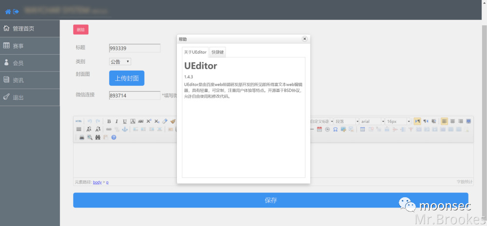 这种CMS我第一步都是看编辑器版本,诶嘿一看这个好啊必有洞,UEditor 1.4.3,转了一圈发现是asp(.NET)的我直接就崩溃了,他这个CMS是PHP开发的,我也是看了一下其他版本的漏洞测试了一下,效果不太理想,注意这个上传封面,我看到了,但是我懒得去测(心里想哎肯定没有的),5 分钟,和我另外一起的师傅就穿完了,(getshell+sql),很打击呀,我就在思考,怎么又是这样,自己不能突破真的是菜到家