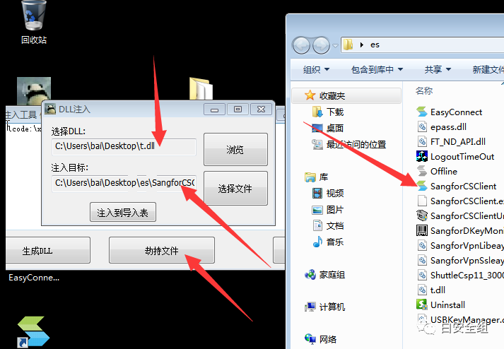 这里我们选择劫持文件,然后选择我们生成的dll和我们需要注入的程序