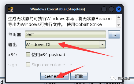 下面我们来生成一个dll的木马。