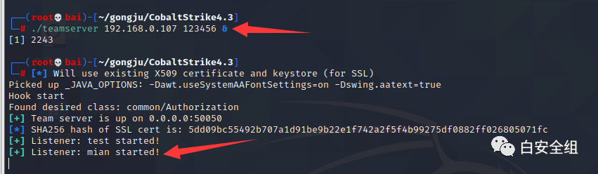 ./teamserver 192.168.0.107 123456 这里IP是你kali的IP,后面是密码,这里目的是多人协同,你可以自行设置密码