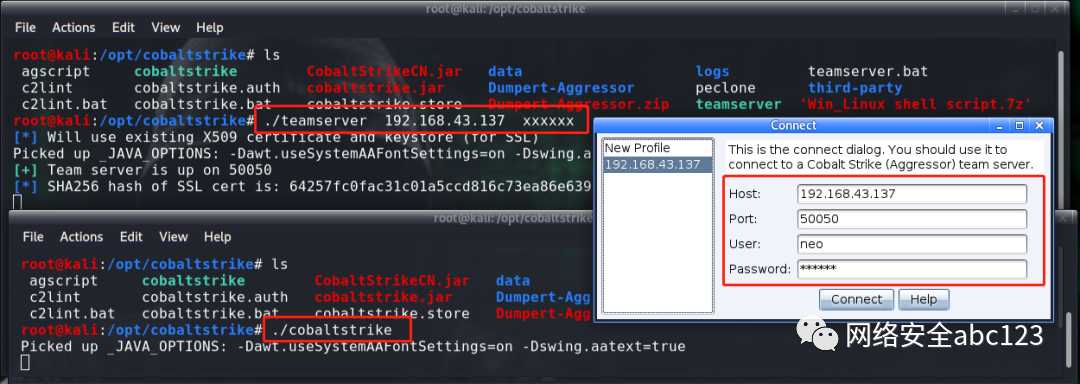 成功使用蜜罐获取到的ip地址、端口、用户名及密码连上cs服务端(以下图片来源于网络)