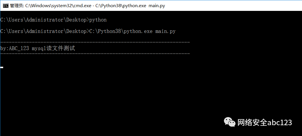 为了验证一下上述猜测,还是要实战测试一下的,从github上找到一个python写的mysql蜜罐脚本,本地简单修改一下,将文件读取的路径改为C:\Users\Administrator\.aggressor.prop,将脚本运行起来。如下图所示,一个监听本地端口3306的mysql蜜罐就搭建好了。