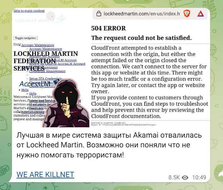 Killnet针对洛克希德马丁公司发起DDoS攻击