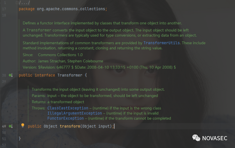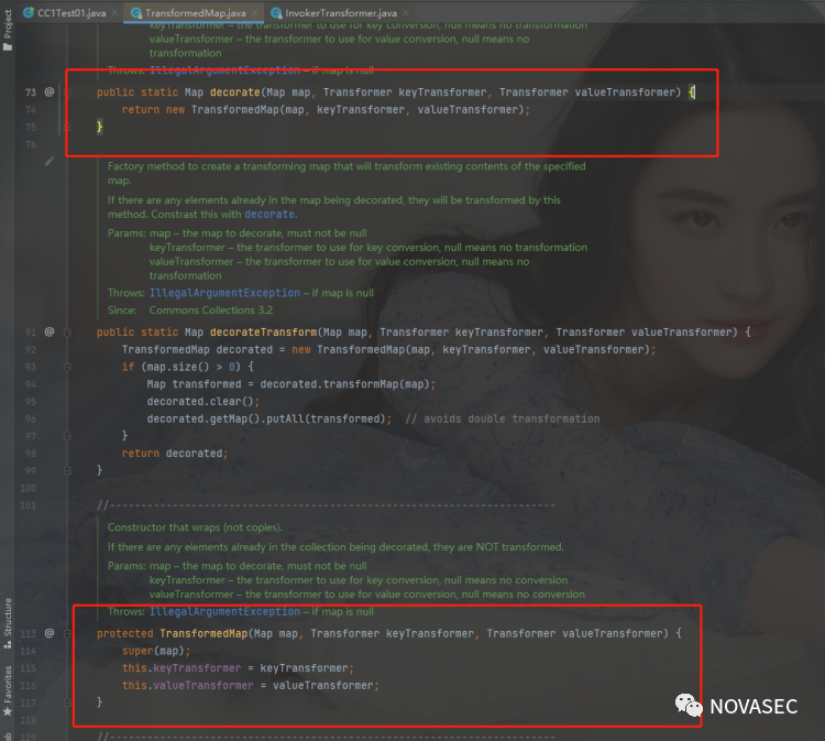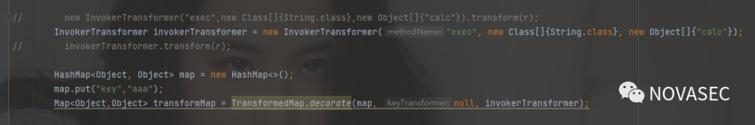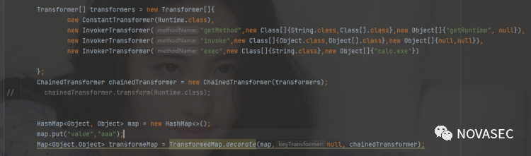 前面可知,TransformedMap可以给一个Map对象进行装饰,获得一个TransformedMap对象,而这个TransformedMap对象在实例化过程中是可以传入一个InvokerTransformer对象的。