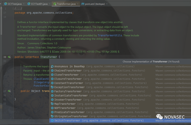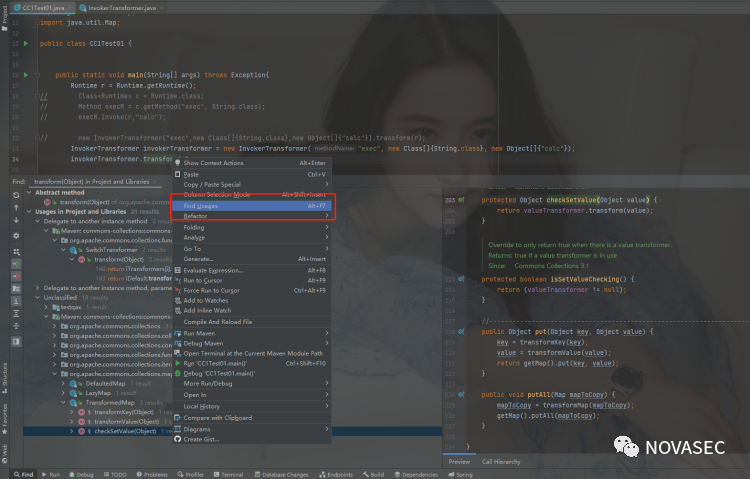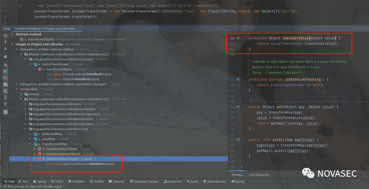 先写一个InvokerTransformer反射执行,然后查一下transform方法的调用链