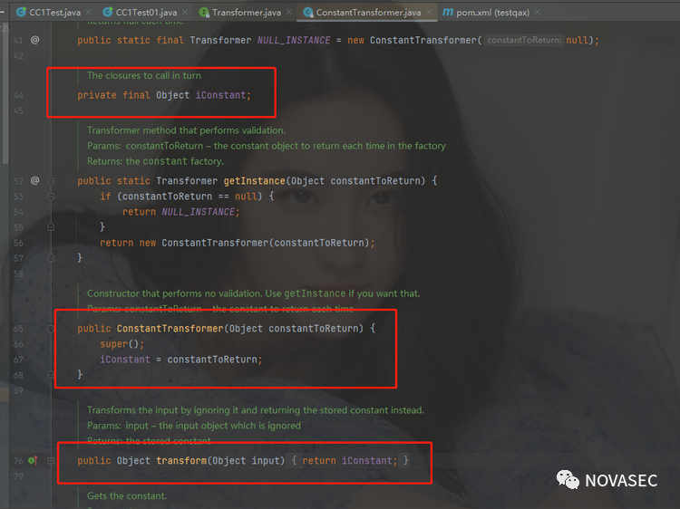 定义了一个iConstant,ConstantTransformer方法给iConstant赋值,transform方法返回iConstant的值