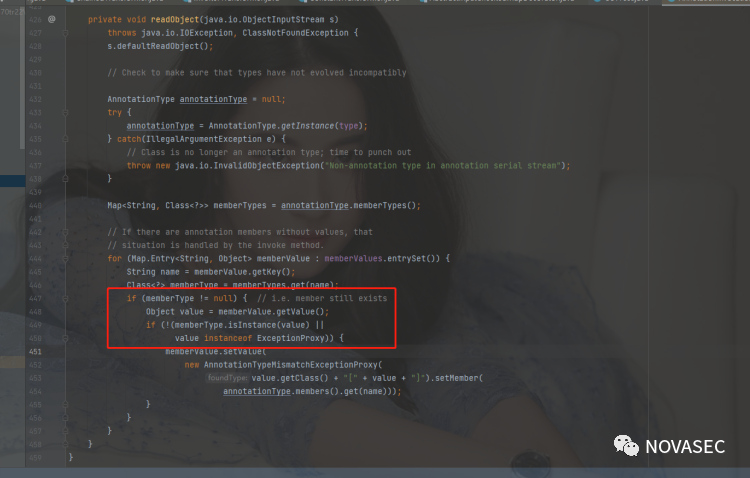 关于AnnotationInvocationHandler类的readObject方法,其中需要注意以下几个问题: