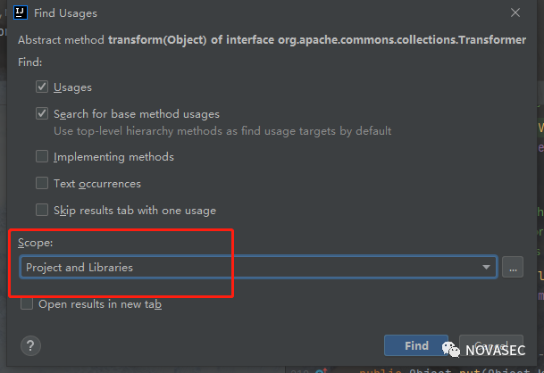 由上可知,需要最终调用transform方法,从最后往前推,先找transform方法的调用链,默认只会查询项目文件,需要改变设置