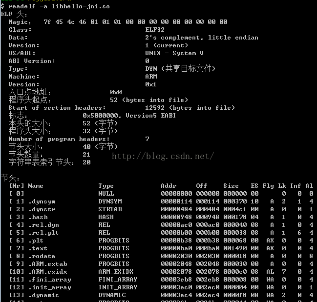 上面我们介绍了elf文件格式资料,elf文件的工具,那么下面我们就来实际操作一下,来用Java代码手把手的解析一个libhello-jni.so文件。关于这个libhello-jni.so文件的下载地址: