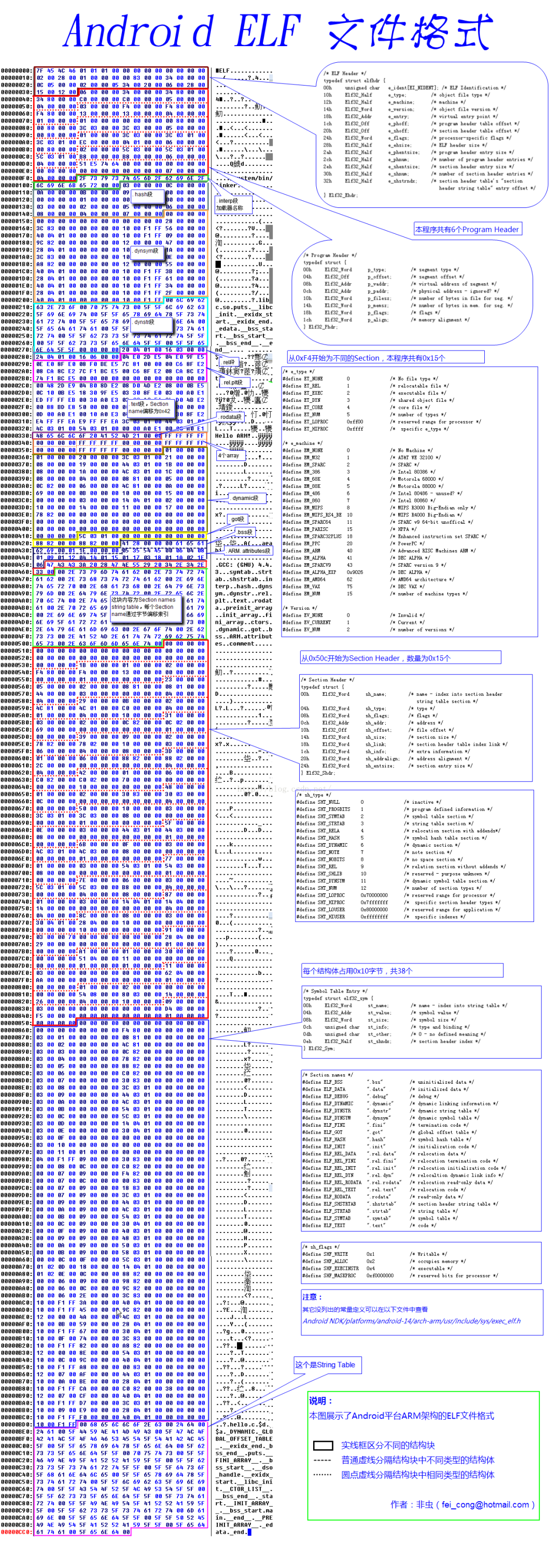 看吧,是不是超级详细?后面我们用Java代码来解析elf文件的时候,就是按照这张图来的。但是这张图有些数据结构解释的还不是很清楚,所以第二个资料来了。