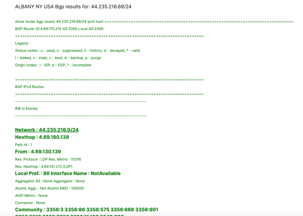 继续追踪 Celer 的 IP: 44.235.216.69 的 BGP Router Ttrace 记录,能够正常找到路由。