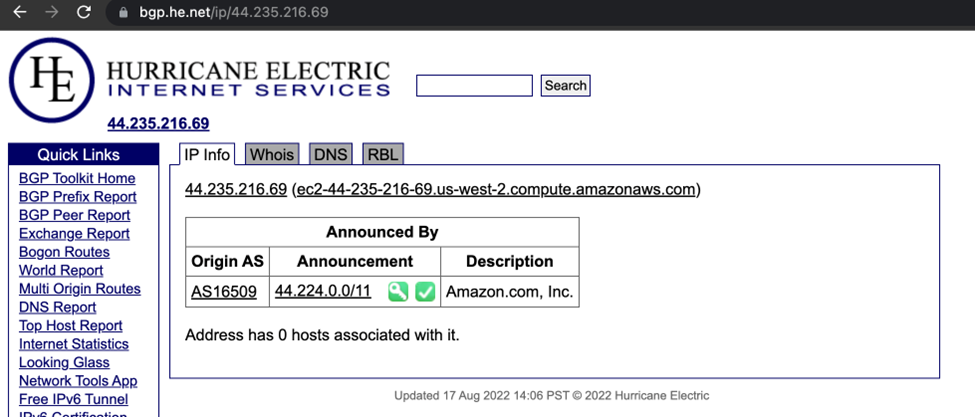 于是我们开始对 44.235.216.69 的 AS 进行检查,发现该 IP 对应的 AS 存在异常。