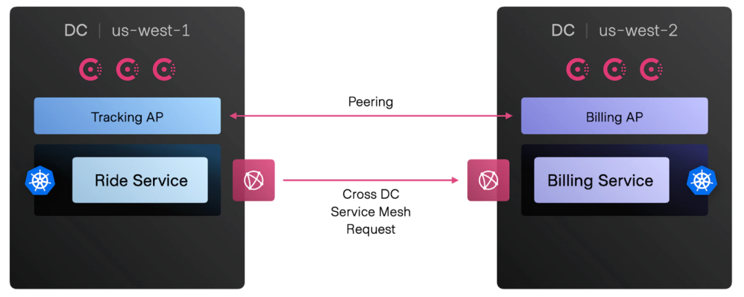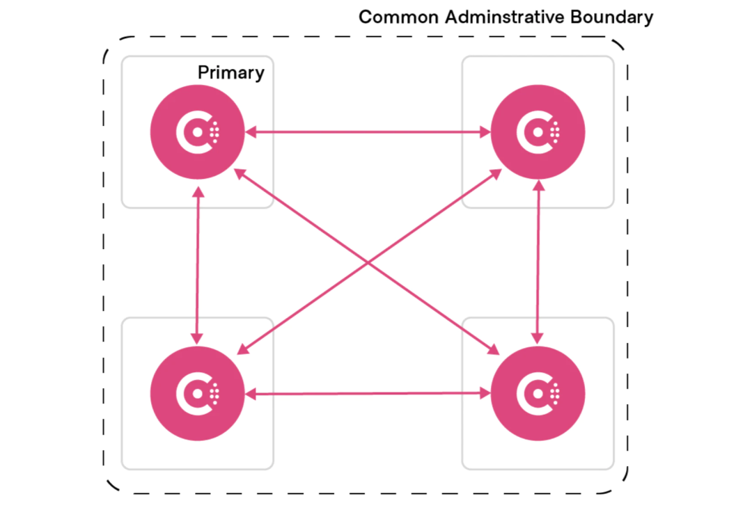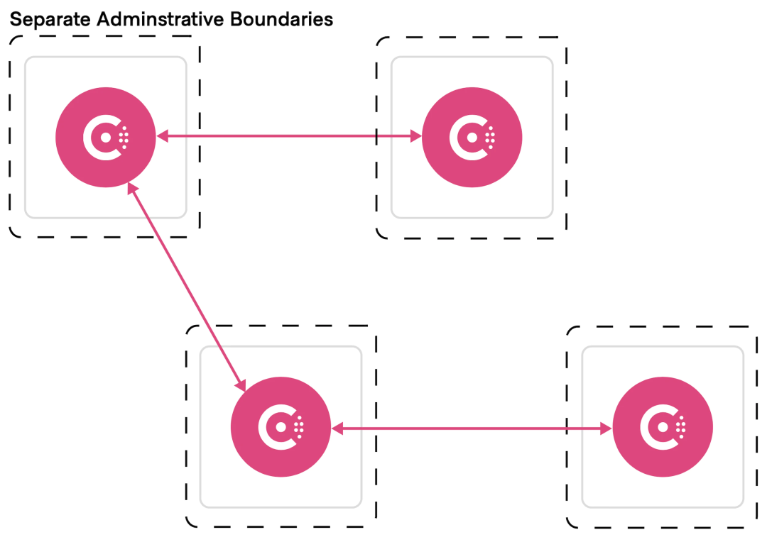 Consul 当前的联合模型基于这样一种理念,即所有Consul 数据中心[6](也称为集群)都由一个共同的管理控制来管理。假设安全密钥、策略和升级活动在整个联盟中进行协调。网格配置和服务身份也是全局的,这意味着特定于服务的配置、路由和意图[7]被假定由同一个团队管理,在所有数据中心都有单一的事实来源。