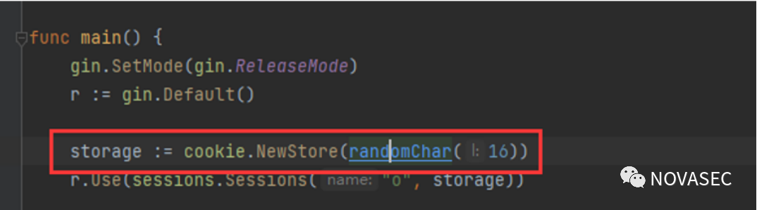 package mainimport ("github.com/gin-contrib/sessions""github.com/gin-contrib/sessions/cookie""github.com/gin-gonic/gin""math/rand")func main() {r := gin.Default()storage := cookie.NewStore(randomChar(16))r.Use(sessions.Sessions("o", storage))r.GET("/a",cookieHandler)r.Run("0.0.0.0:8002")}func cookieHandler(c *gin.Context){s := sessions.Default(c)s.Set("uname", "admin")s.Save()}func randomChar(l int) []byte {output := make([]byte, l)rand.Read(output)return output}