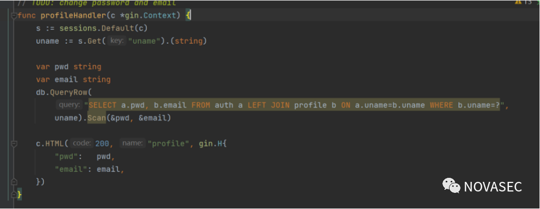 就是对uname、pwd进行简单的判断,成功就设置key为uname的session,并且跳转到/profile 路由,跟过去。