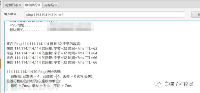 验证成功Windows单网卡并且出网。注意ping命令控制数量防止死ping。