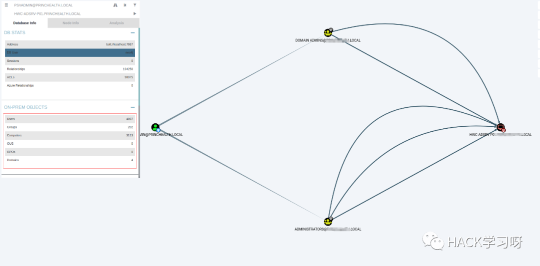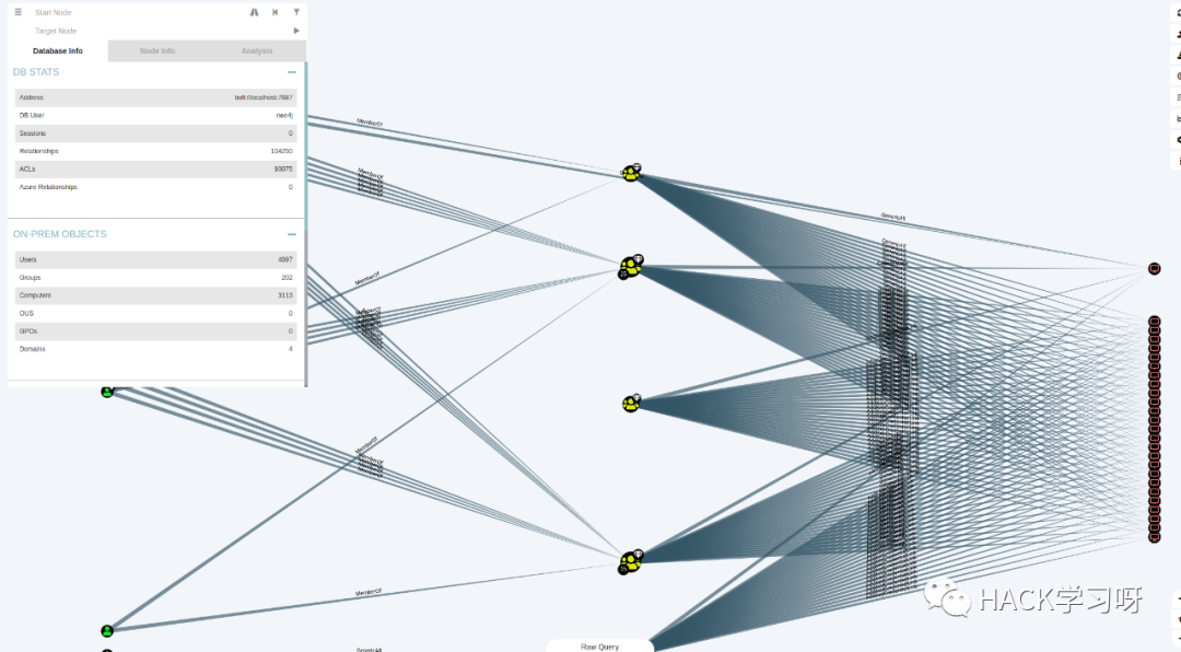 grep "CN=" spn.txt | awk -F "," {'print $1'} | awk -F "=" {'print $2'} > host.txtspn看起来太麻烦了,所以使用ADExplorer连接域控机器并导出域结构,ADExplorerSnapshot.py转换json格式,并将其导入Bloodhound,进行可视化分析,3113台机器,4897个用户。