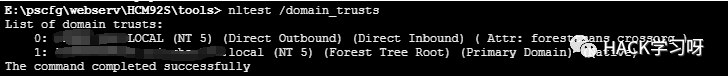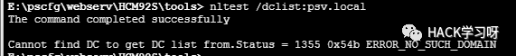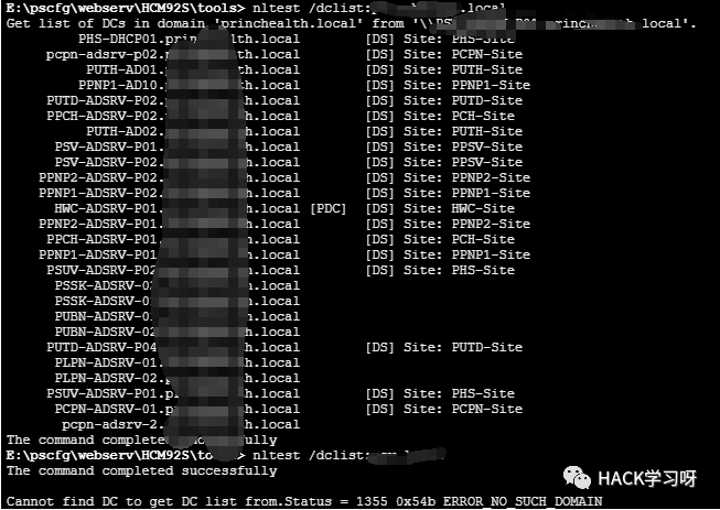 nltest /dclist:domainname其中HWC-ADSRV-P01为主域控机器,但没有找到子域的域控。