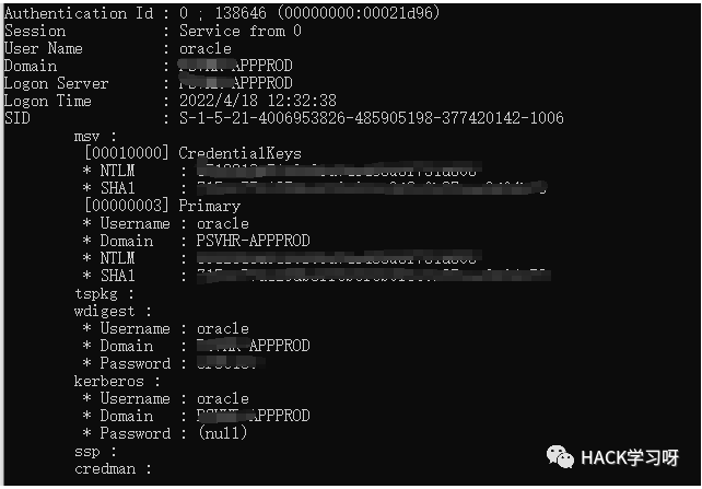 PSVHR-APPPROD\oracle:xxxx查看是否在域内。